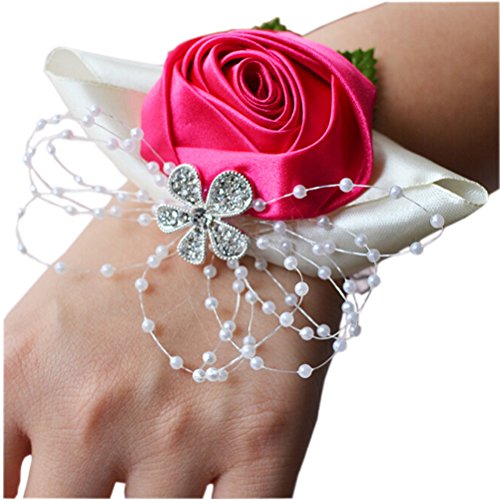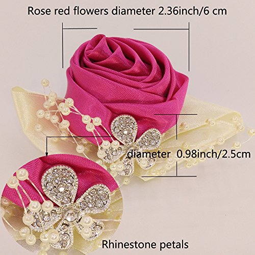 Arlai 1 pcs Wedding Bridesmaid Bride Wrist Corsage Decoration Hand Flower, Rose Red
