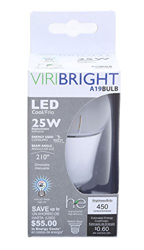 Viribright 750007-12 0007 25W Equivalent LED Light Bulb, (5W), 4000K, A19 Style, E26 Medium Base, Cool White, 12 Piece