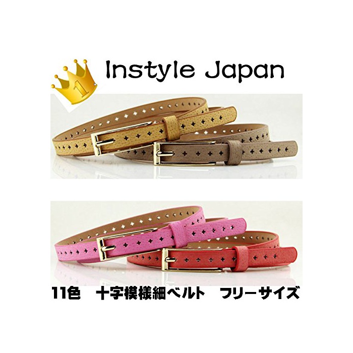 원본상품명: ベルト レディス 細ベルト 【 十字 模 】 ベルト全にホイル サイズ フリ 本革 のような風合い 選べる11色 [Instyle Japan]