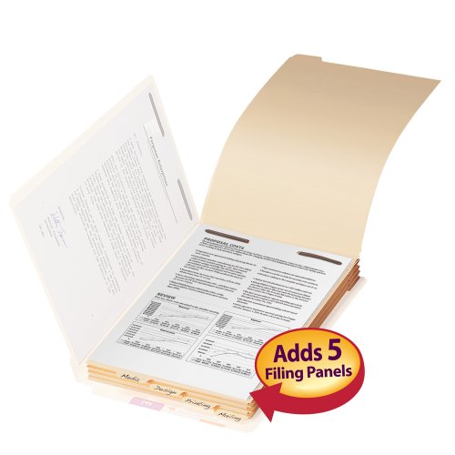 -. Feature : Create additional filing surfaces as needed in any fastener folder / Sections can be removed from folder without disturbing paper order / Tabs on bottom of dividers allow for quick identification / Ideal for personnel, tax or legal files / For end tab or top tab folders / Contains 10% recycled content, 10% post consumer material