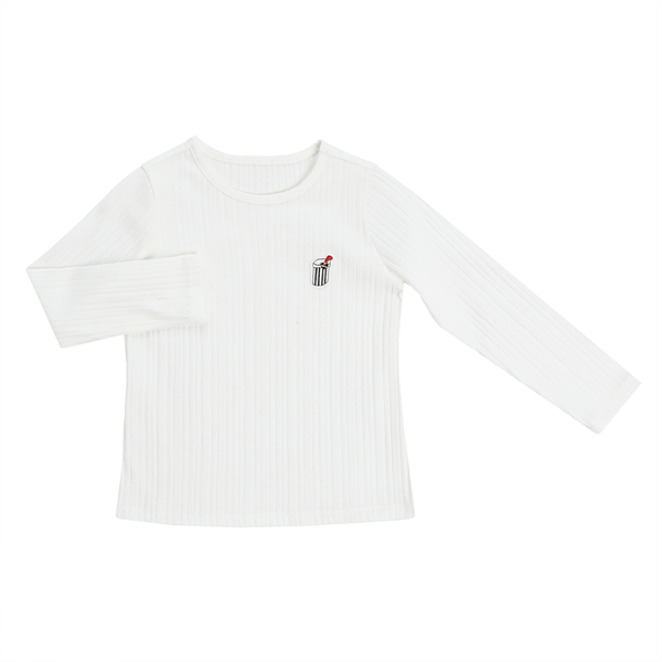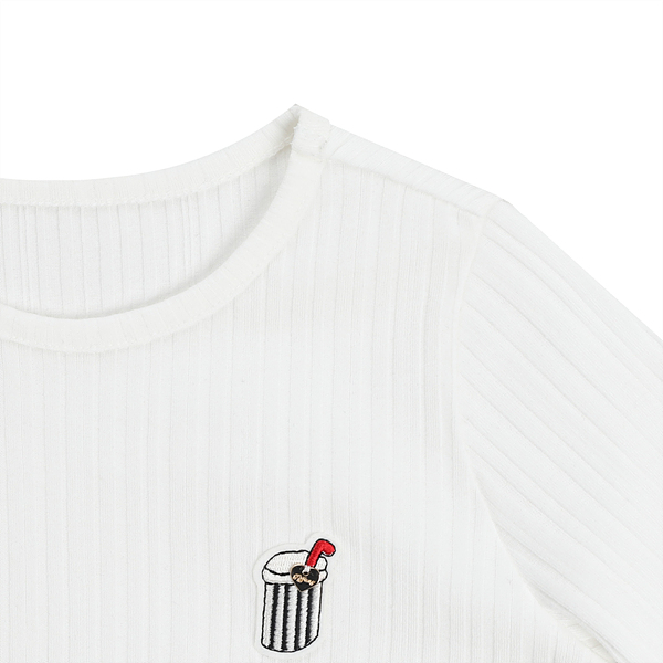 소재-겉감-폴리에스터74%면26%색상-아이보리 사이즈-110,120,130,145,155,165상세설명-기본 라운드 티셔츠에 불규칙 골지 다이마루로 앞판에는 음료컵 모티브의 와펜이 장식되어 있습니다. 기본티로, 이너웨어로 받쳐입기에도 적합한 티셔츠입니다.