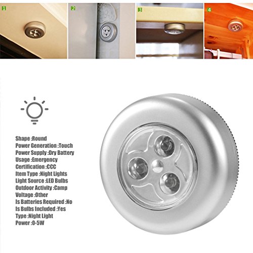 - ☆ No hassle Battery replacement:Simply twist to remove the cover and swap the 3-AAA batteries (not included) that power this tap light. To provide you with illumination in areas that have limited or no access to electricity.The proper use of 3AAA alkaline batteries can guarantee that Light will last for a long time and prolong the lifetime of the batteries.
