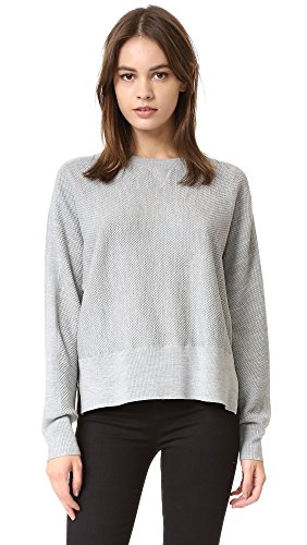 This sweater is soft and light in a wool silk blend. An on-trend sweatshirt-inspired look, this pullover is double-faced for dimensional interest, with an exterior waffle-like texture that's backed by a smooth interior. Blocked contrast ribbing finishes the look with sport-luxe interest.Feature