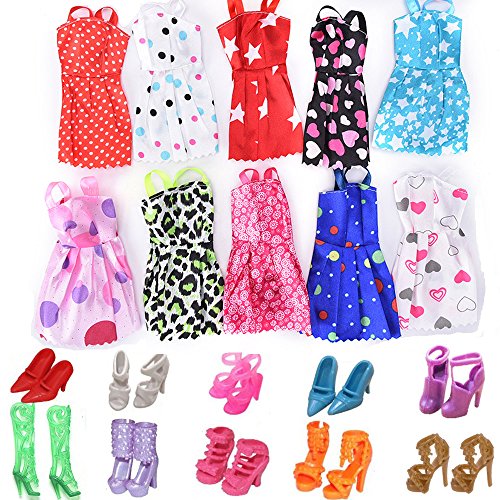 Product Description Specification: Suitable for 11" Doll Handmade clothes and sewing. Note: Style of dress will be sent at random Not suitable for children under 36 months Package includes: 10 pcs dolls clothes 10 pairs shoes 0