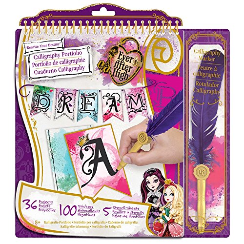 - Feature : ONE FREE mini Tapeffiti tape is bundled with this item. The Tapeffiti tape is considered a FREE bundled item. If you return this item, it must be returned. / Ever After High is a companion line to the popular Monster High franchise based upon characters from fairy tales and fantasy stories. / Learn the art of calligraphy and create an enchanting collection of stationery with the Ever After High "Rewrite Your Destiny" Calligraphy Portfolio set by Fashion Angels. / This portfolio includes formatted pages to create alphabet banners, bookmarks, postcards, and royal scroll messages. / Includes 1 calligraphy pen with feather, 5 stencil sheets, 100 decorative stickers, calligraphy guide, practice pages, 20 scroll sheets, 12 alphabet cards, 2 bookmarks, and 2 postcards, and instructional design guide. For ages 8+.