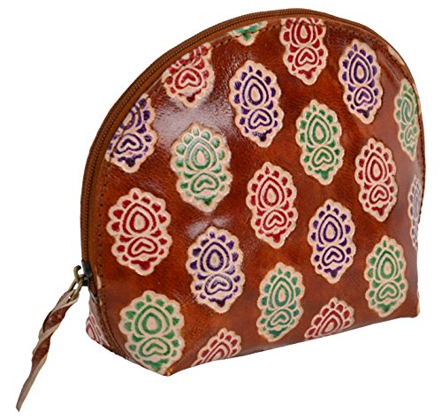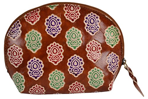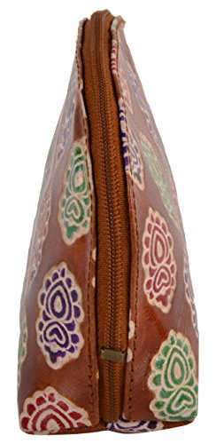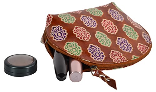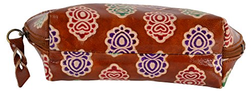 SAAGA Hand Painted Leather Makeup Pouch Cosmetics Bag Makeup Organizer Travel Bag Toiletry Kit with Floral Motifs / Handmade : 6x4x2 inches (LxBxH)