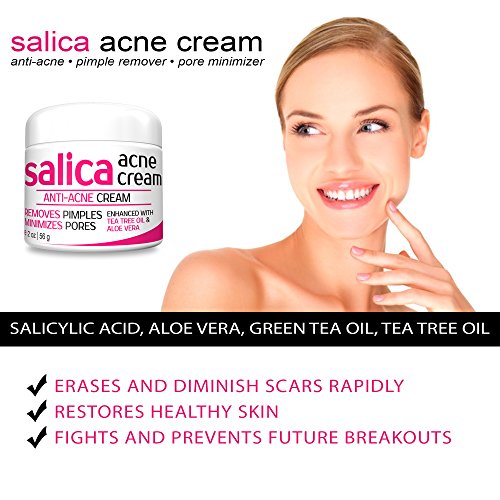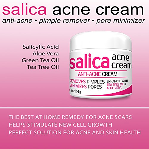 SALICA Acne Cream is made with potent and organic ingredients which includes Salicylic acid 2%, Aloe Vera, Green Tea and Tea Tree Oil. This extraordinary blend is developed especially in the hopes of creating the best pimple remover, pore minimizer, blackhead & acne scar remover, and cystic acne treatment cream available! It gets beneath the surface to stop breakouts before they start. It is the perfect addition to any skin care routine to help achieve a beautiful and youthful glow for acne-prone skin.