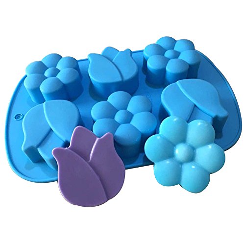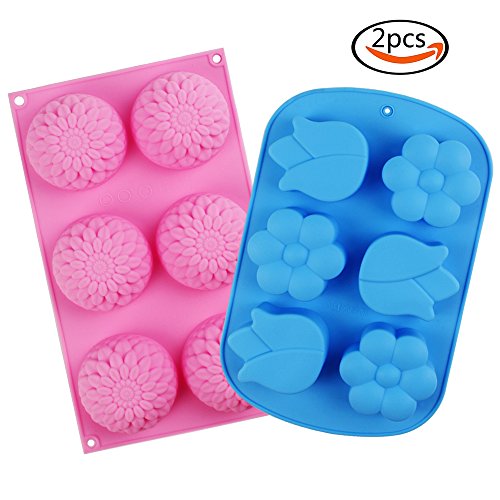 Cocoboo 2pcs 6 Cavity Assorted Flower Silicone DIY Soap Mold Handmade Cake Molds