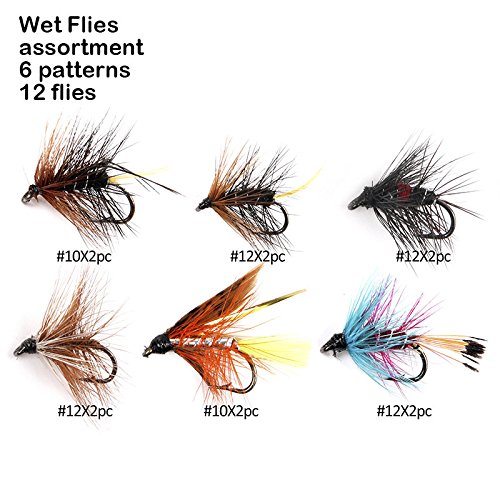 -. Feature : Wet Flies assortment 6 patterns 12 flies / #10x2pc , #12x2pc , #12x2pc , #12x2pc , #10x2pc , #12x2pc
