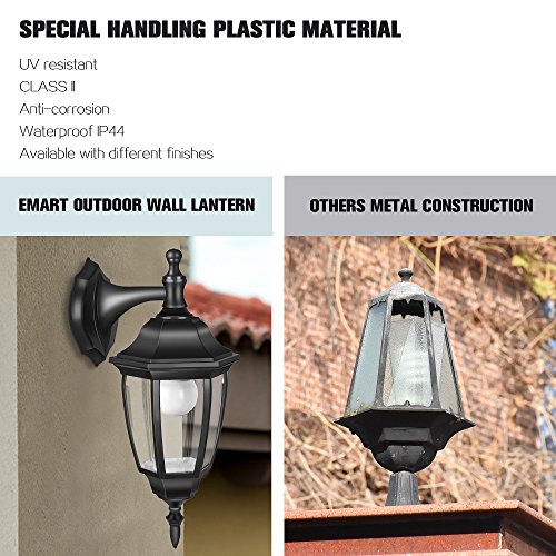 EMART Outdoor Porch Light LED Exterior Wall Light Fixtures, Special Handling Anti-corrosion Durable Plastic Material, Waterproof Security Lamp for Wall, Garage, Front Porch - 2 Pack