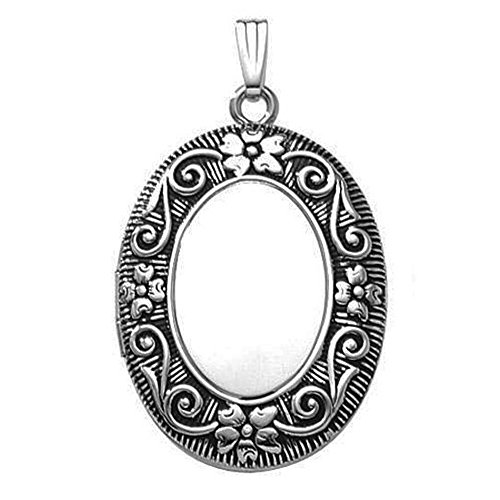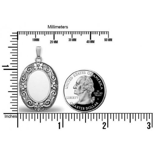 CHAIN IS NOT INCLUDED Locket holds 2 photos. Available in Large & Extra Large This Oval Locket is .925 Solid Sterling Silver and holds 2 photos. The front of this locket is beautifully engraved with a gorgeous floral design around the edge of the locket. The front, the inside and reverse sides of this stunning locket can be engraved with a personal message. This is the perfect gift for any occasion.Feature
