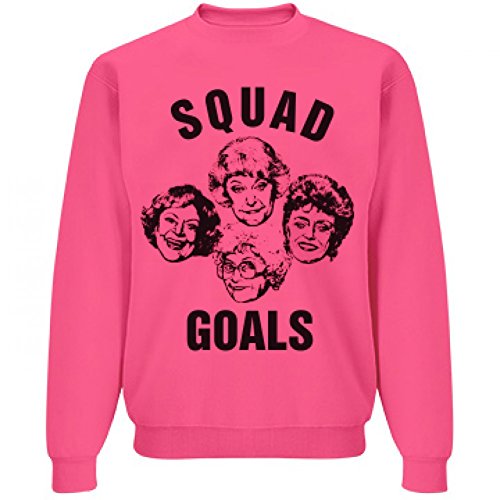 Binding : Apparel Product Description Cheerleader! Show how much you love the Golden Girls with this funny and cute crewneck sweatshirt. This is the funniest group of girls around and they've officially become your 'Squad Goals'! Wear this sweatshirt with their faces on it to cheer practice or when your with your 3 closest friends. JERZEES' NuBlend pill-resistant neon fleece is great for graphic designs that will need multiple washes. Wear them loud and proud. 0