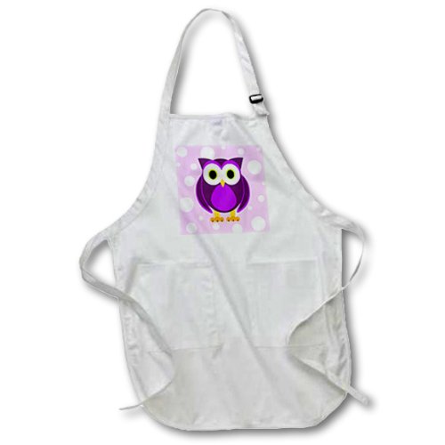 3dRose apr_13757_1 Cute Purple Owl on Light Purple Background Full Length Apron with Pockets, 22 by 30-Inch, White