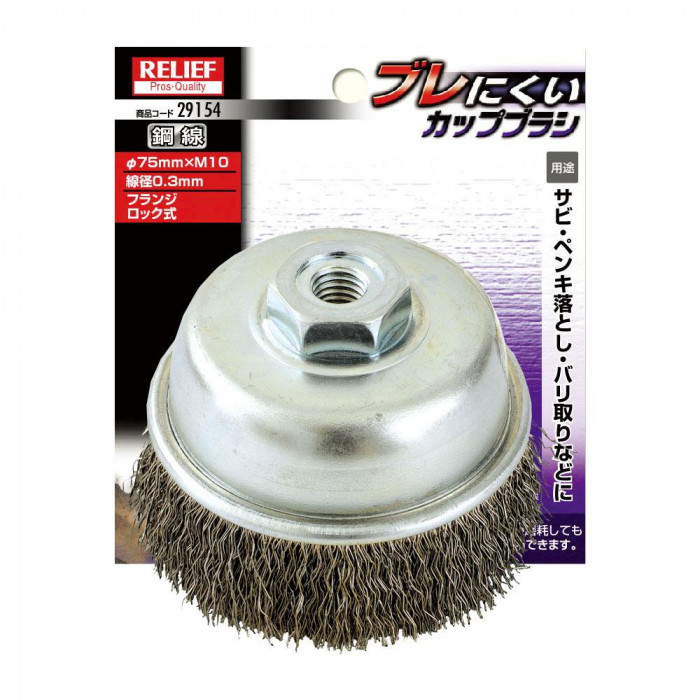 fk094igrjs線材を均一に入れているのでバランスがよく、たとえ長期使用により線材が摩耗して少なくなっても回転による片寄りがありません サイズ Φ75mm×M10、線径:0.3mm 個装サイズ:11×13×6cm 重量 個装重量:302g 素材・材質 鋼線 製造国 韓国 フランジロック式を採用したプロ仕様のブラシ ■フランジロック式とは 金具(フランジ)の中に均一に線材の束を通して、円盤型に製造する方法です 線材を均一に入れているのでバランスがよく、たとえ長期使用により線材が摩耗して少なくなっても回転による片寄りがありません