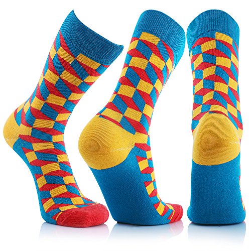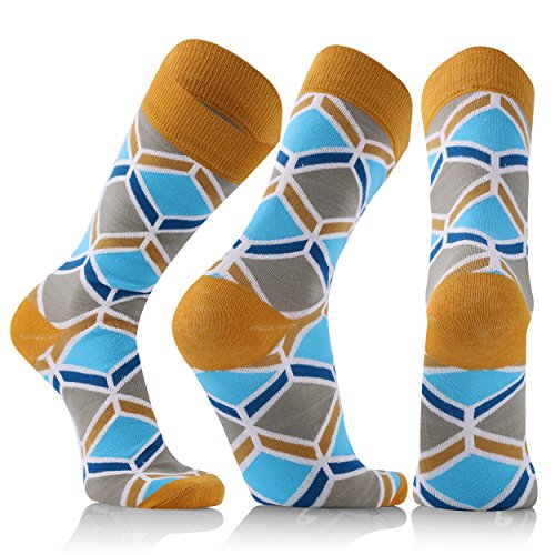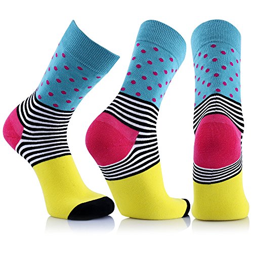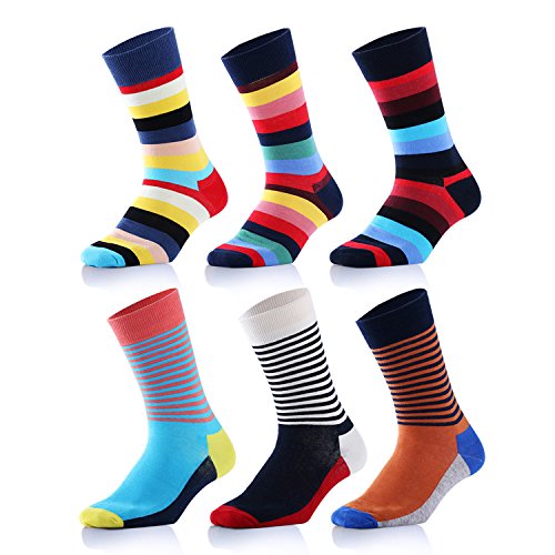 -. Title : Facyteck Men's Dress Socks, Colorful Patterned Cotton Crew Socks 6 Pack