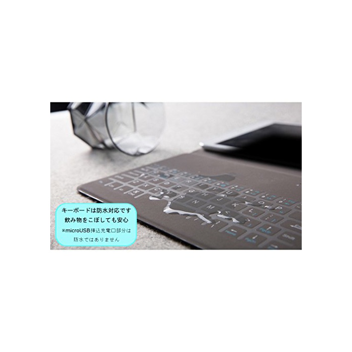 【두께 불과 4.0mm의 울트라 슬림 방적 사양】 키보드부의 두께 불과 약4.0mm의 초극박 사양.통상의 iPad용 보호 커버와 비교해도 거의 손색이 없는 엷음이 되고 있고, 경량 (이므로)그래서 운반시에도 편리합니다.장소를 선택하지 않아 멋지게 스마트로 문자 입력에 옵니다.키보드면은 폴리우레탄제에 방수 사양.마실 것을 엎지러져도 안심입니다.※microUSB충전구 부분은 방수비 대응입니다.주의해 주십시오.