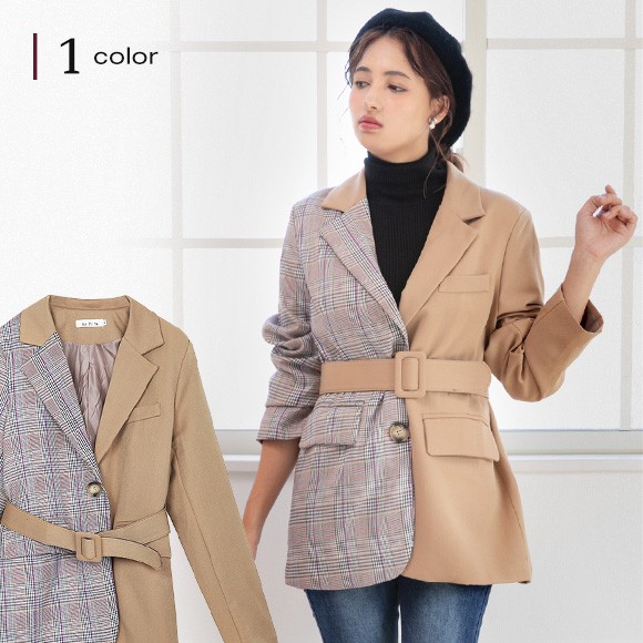 大胆に切り替えられたチェック柄がポイントのジャケットです☆