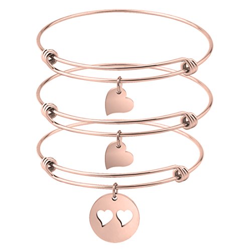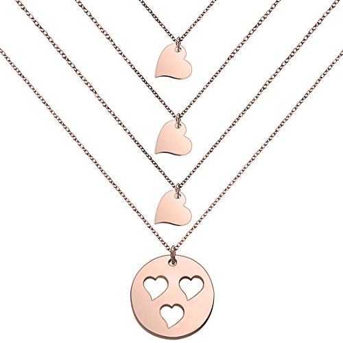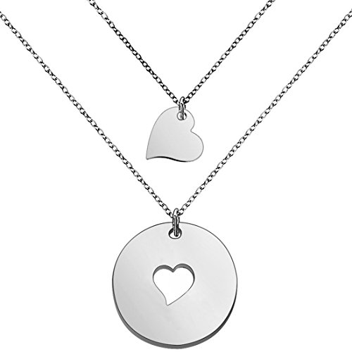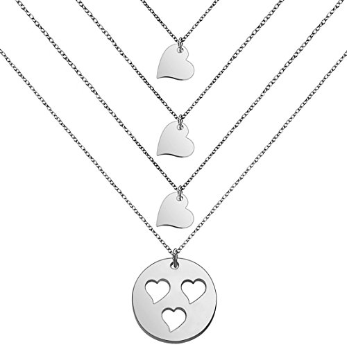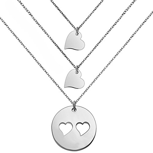 Perfect gift for mother. Three separate necklaces featuring sterling silver cut out heart disc for mother and tiny heart necklaces for daughters.