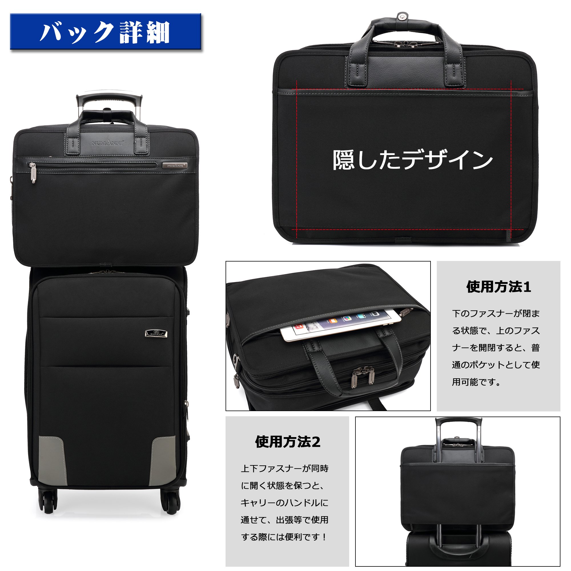 If you keep the state where the zipper is open at the same time, it becomes a carry supporter, it can be passed through the handle of the carry, it is convenient when using the carry case for a long business trip etc!
