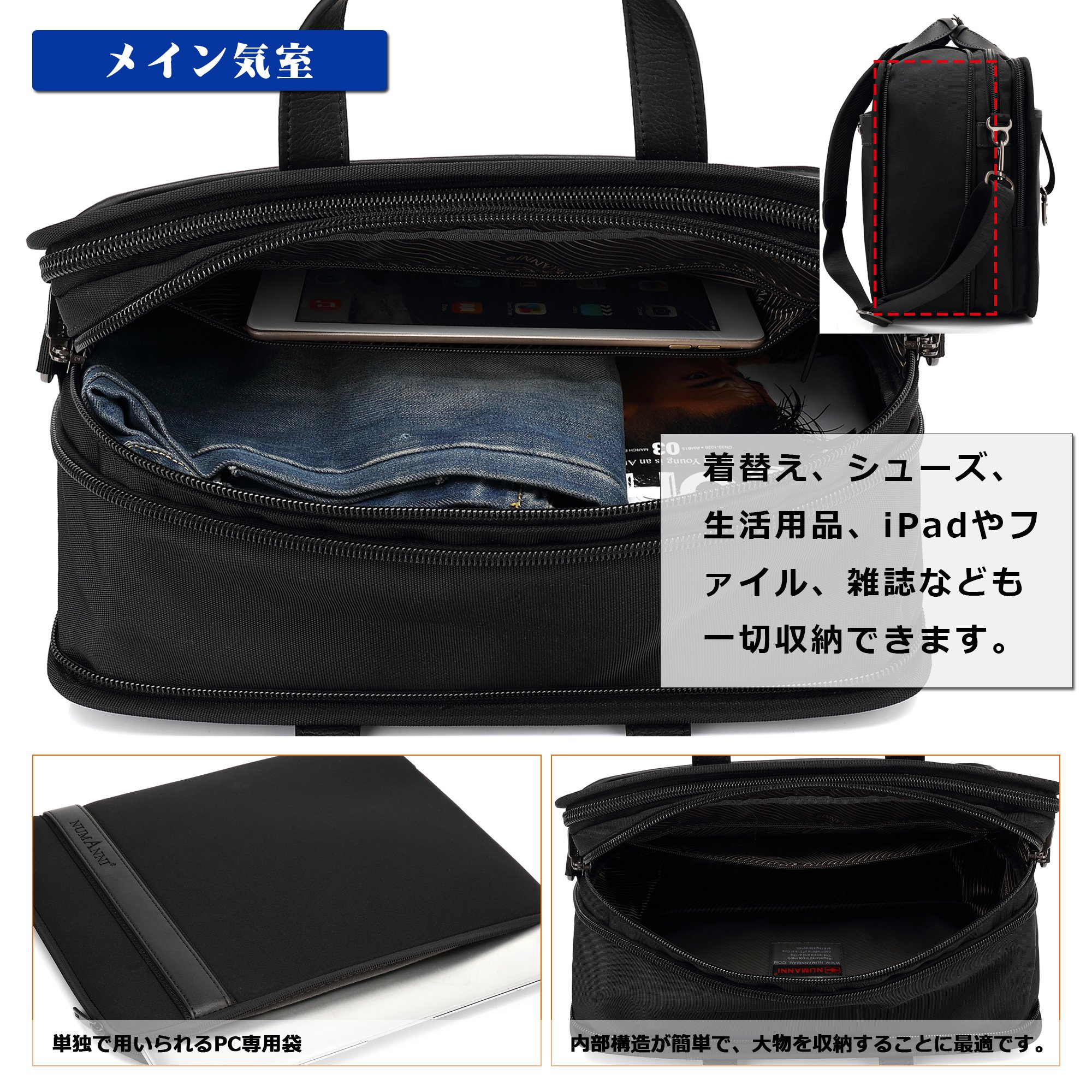 The zipper pocket is also big and can store important items such as iPad and tablet.