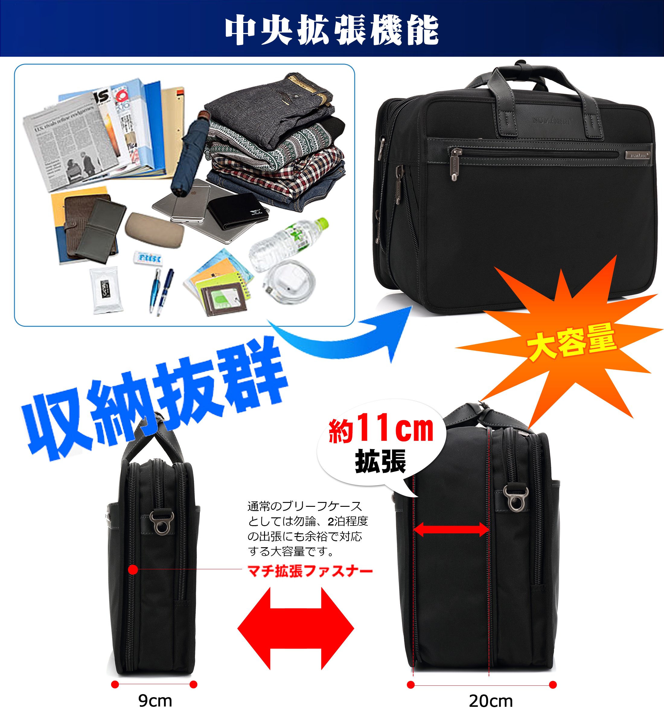 Machi extension function: With fasteners that can adjust gore, spread gusset up to 20 cm by the amount of luggage.