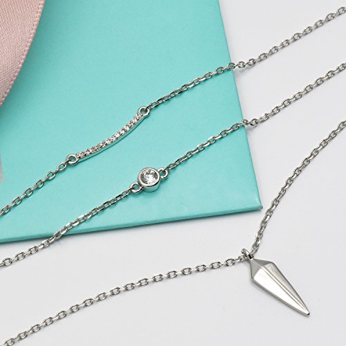 MULTIPLE LAYER NECKLACE MATERIAL: real 925 silver, Nickel-free, Lead-free, Cadmium-free and Hypoallergenic, long time wearing high quality silver jewelry will be good for your health
