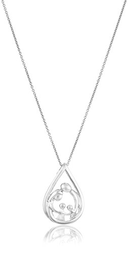 Sterling silver necklace featuring open teardrop pendant of mother, father, and child silhouette