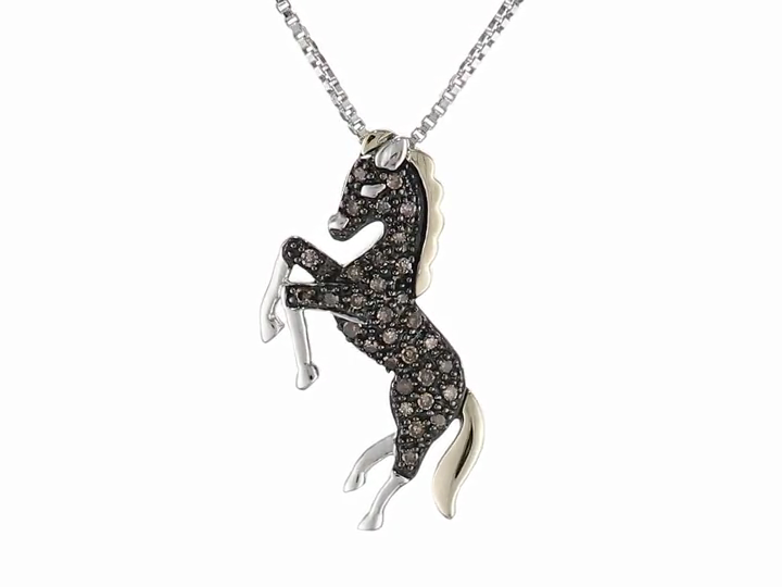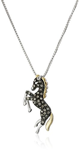 Sterling Silver and 14k Yellow Gold Brown Diamond Horse Pendant Necklace(1/7 cttw)