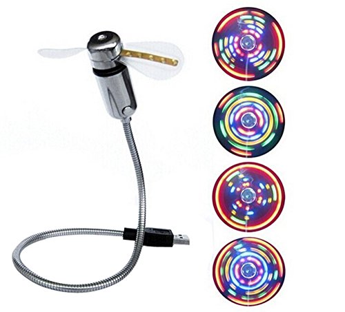BicycleStore® Silver Mini Portable Flexible Desktop Computer Notebook PC Colorful LED Light USB Fan