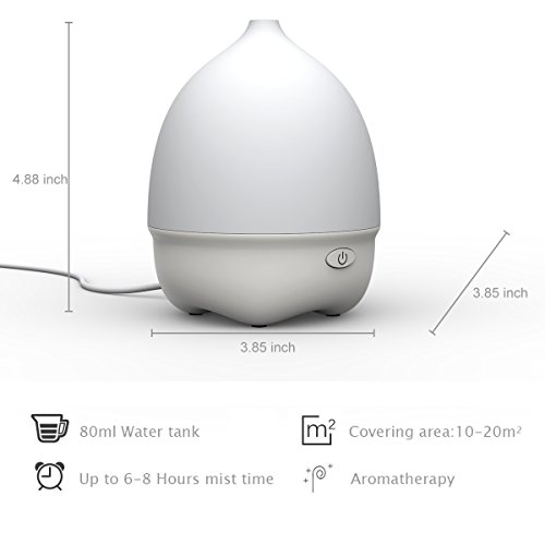 Essential Oil Diffuser, 70ml Aroma Essential Oil Cool Mist Humidifier with Adjustable Mist Mode,Waterless Auto Shut-off and 7 Color LED Lights Changing for Home Office Baby USB Plug, white
