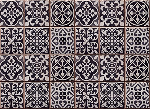 Home Decor Line CR-67253 Tiles Azulejos Kitchen Panel, Black