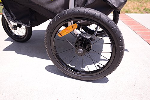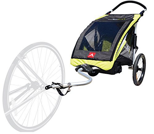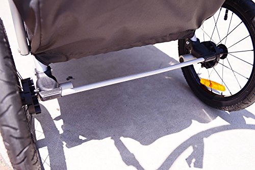 - Feature : Aluminum Framed 1-Child Bike Trailer quickly connects to most standard bicycles / Quickly converts to a swivel wheel jogger, with lockout feature to fix front wheel in place / Rear suspension smooths out bumps in the road / Raised rear axle for when in jogger mode, with foot activated parking brake / Zipper secure three season rain and bug cover
