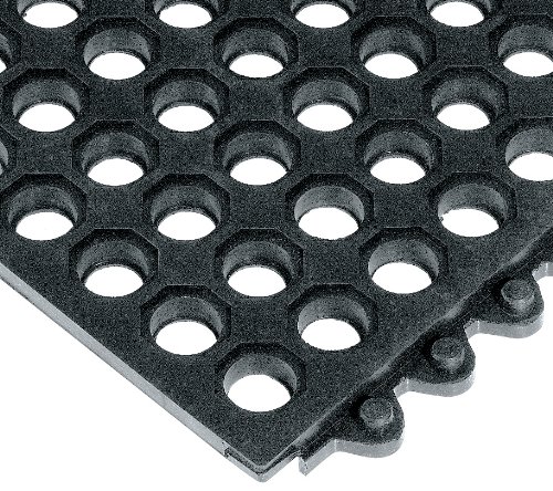 Wearwell Natural Rubber 572 24/Seven Anti-Fatigue Grease Resistant Mat, for Wet Areas, 3' Width x 3' Length x 5/8" Thickness, Black