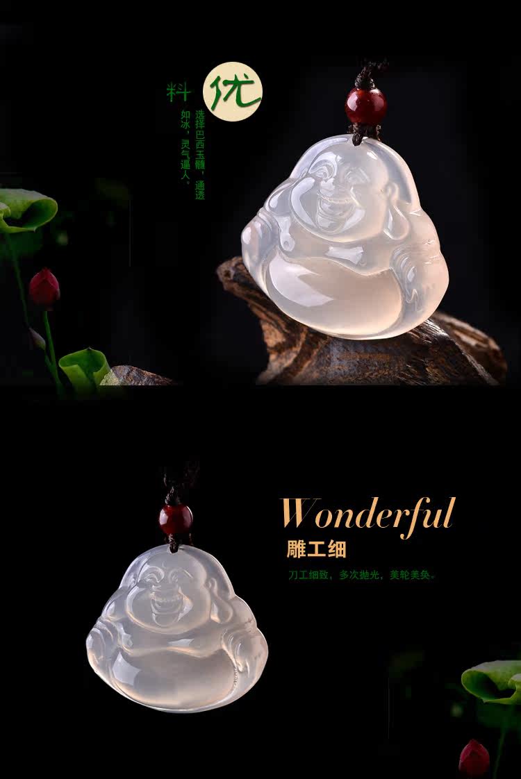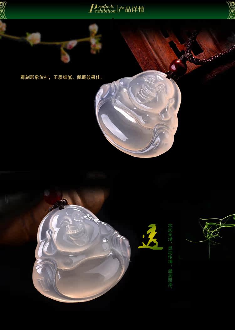 冰种玉髓佛挂件笑佛项链笑口常开玉髓吊坠佛公项坠