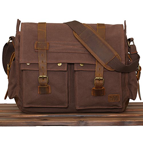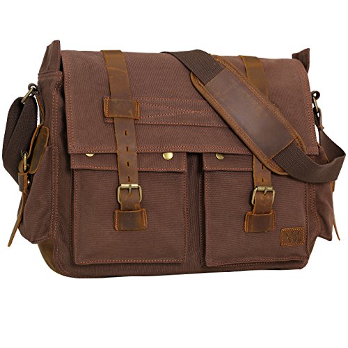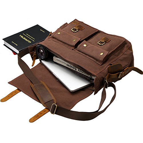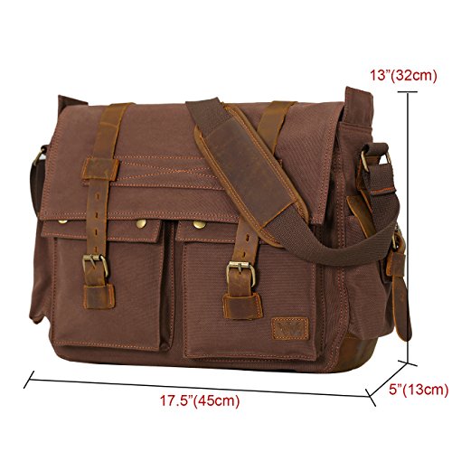 Wowbox 17 Inch Men's Messenger Bag Vintage Canvas Leather Satchel bag Military Shoulder Laptop Bags Bookbag Working Bag for Men and Women