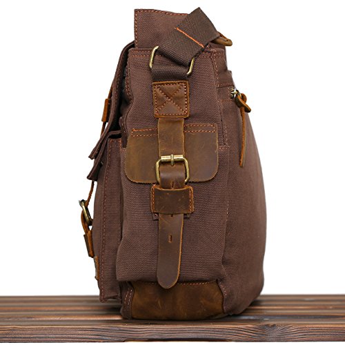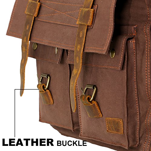 【Premium Material】►Easy-going style Wowbox vintage canvas military bag is constructed by high-quality canvas, genuine cowhide crazy leather ,stainless strong hardware buckle and SBS zippers, to ensure long-lasting durability.