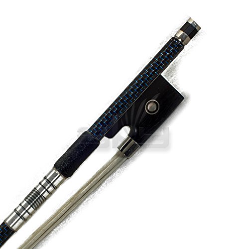 -. Title : SKY 4/4 Violin Bow Satin Carbon Fiber Round Stick Blue Silver Inlaid Patterned Mongolian Horsehair Silver Wrap Blue with Double Eye Fully-Line Abalone