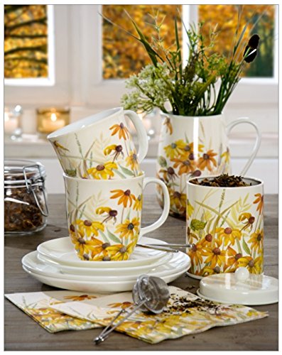 - Design features Orange and yellow flowers with wispy grey-green grass on a cream background