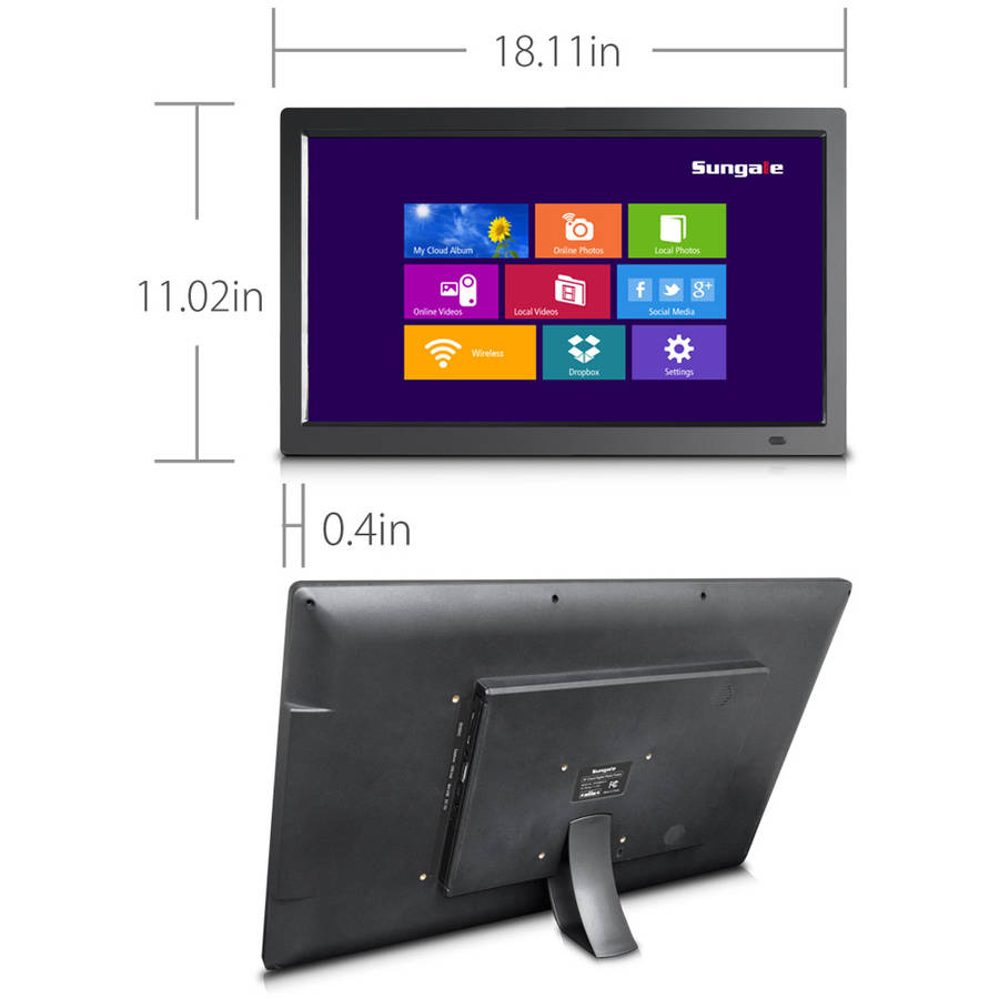 This easy-to-use device has internet connectivity and features free cloud storage. It receives and displays real-time photos sent to it from anywhere in the world, and you can access your favorite social media sites such as Facebook, Twitter and Google . Using our backup list system, you can find and install the most popular photo and video hubs available such as Flickr, Picasa, Instagram, Netflix, Huluplus and more. You can even select and watch endless movies at Netflix and other video-hubs when you want some extra entertainment at your desk, table or room. 19" Cloud Digital Photo Frame:
