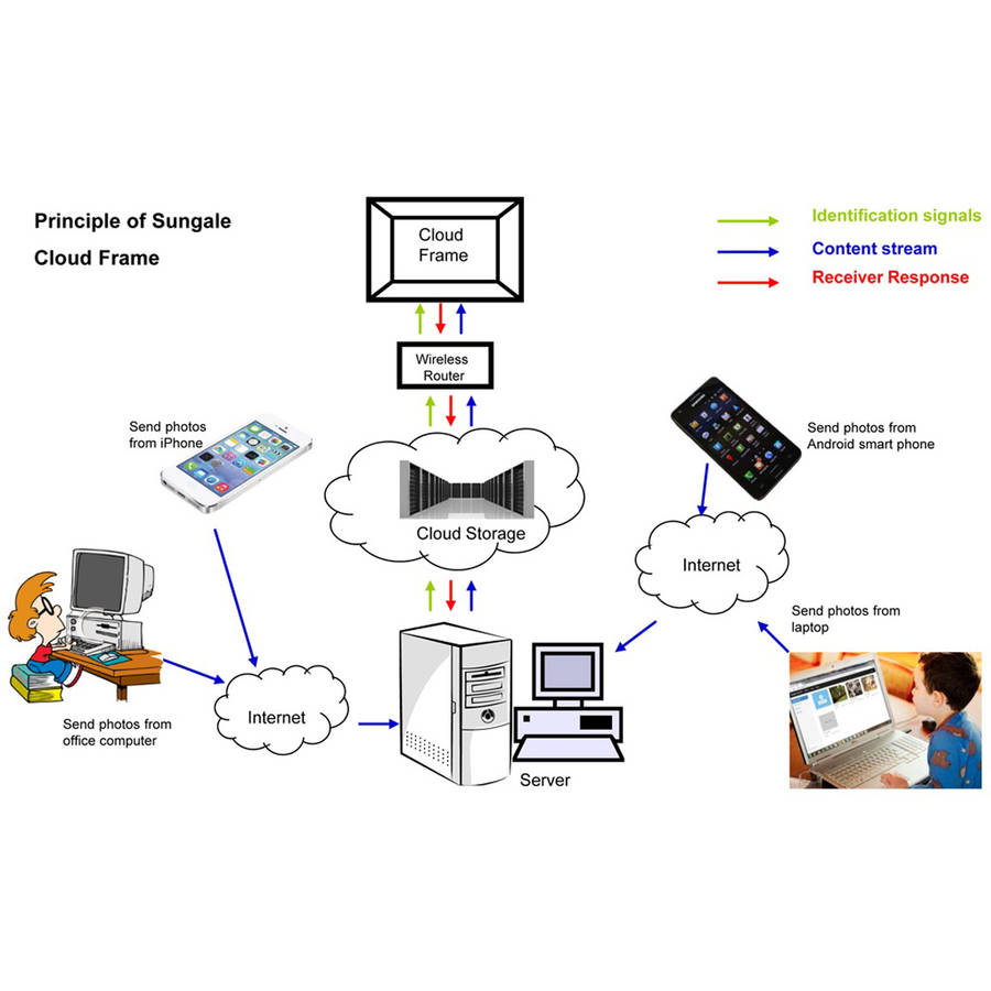 Hi-definition screen, 8GB flash memory, SD card slot, USB OTG, Dual interface, tabletop stand and VESA Mount holes on the back for mounting on the wall. The Cloud Frame covers all features and functions of other Wi-Fi Smart Frames and includes free Cloud Storage to receive real-time photos from your cell phone. Display Photos, Play Movies, Browse Social Media APPs or the internet using the web Browser, and even watch YouTube videos. This device is compatible with the most popular android apps and works as an essential controller of the Connected-Home.