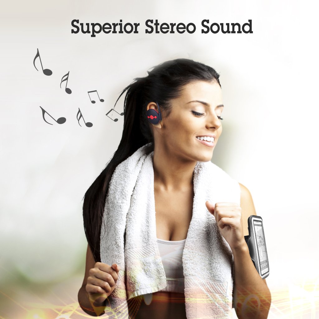 PERFECT SPORTS GADGET: Lightweight (23g) and perspiration proof. The behind-the-head design eliminates troublesome wires tangling or flapping around when running, jogging, cycling or working out, and the ergonomic design of the ear buds provide a snug fit; never falling out of your ears even sprinting or jumping. |