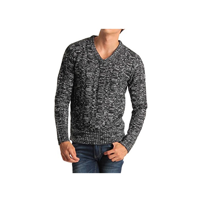 원본상품명: Vネック ケブル編み ニット メンズ セタ カラニット ニットソ 長袖 カジュアル ストリト アメカジ 防寒 秋冬 ブラックミックス Lサイズ
