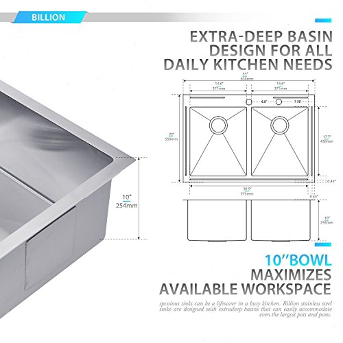 More extra benefits: Handcrafted channel grooves for optimal drainage, Ten close radius corners for sleek look and easy cleaning; Rear set drain for more underneath cabinet space; 10-Inch deep bowl to hold your large items.