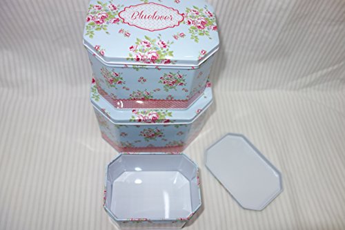 Decorative Cookie Storage Tins, Shabby Chic, Octagon Shape with Set of 3