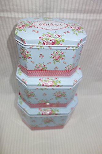 floral design themed set of 3 cookie tins big(6.5x5x4.5 high) med(5.5x4x3.5 high) small(4.5x3.5x3 high) shabby chic decorative storage, great for your kitchen decor.....!