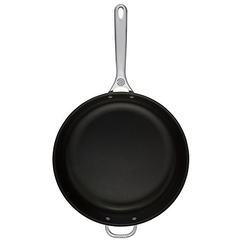 Le Creuset's premium stainless steel reflects the same European craftsmanship and character that has defined Le Creuset cast iron for decades. The 11" Nonstick Deep fry pan features an ergonomic stay-cool handle for easy maneuvering. Tri-ply construction ensures even heating and makes this pan ideal for many kitchen tasks, from searing and sautéing to pan-frying and simmering.