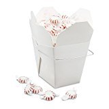 - These “Great” Chinese take out boxes are Super to use at any time. It is Excellent to be used for home enjoyments and as party favor boxes. It is perfect to Fill with your favorite candies or other small goodies. The durable makeup of the box enhances it beautiful look and your guest will be astonished by your event when they will receive these adorable white favor boxes with the attached medal handle, for them to enjoy or take home as a souvenir from your gathering!!!