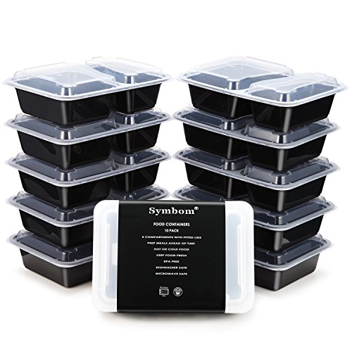 Symbom 2-compartment BPA-Free Reusable Microwavable Meal Prep Lunch Containers with Lids, Food Storage and Portion Control for 21 Day Fix , 30-Ounce, 10 Pack