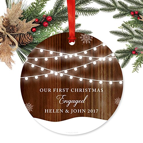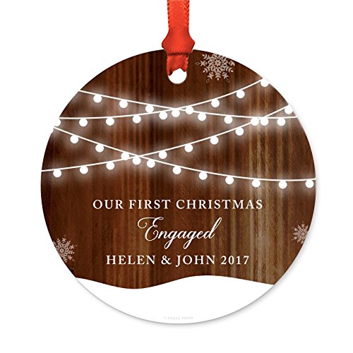 (Andaz Press)/Stationery Party Supplies/Gift Wrapping Supplies/DIRECT FROM USA/Andaz Press Personalized Wedding Engagement Metal Christmas Ornament, Our First Christmas Engag...