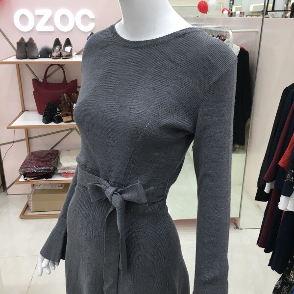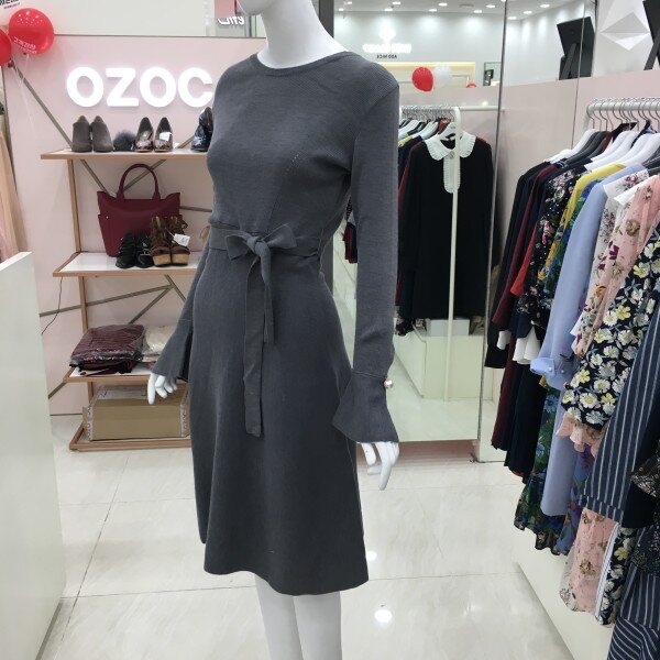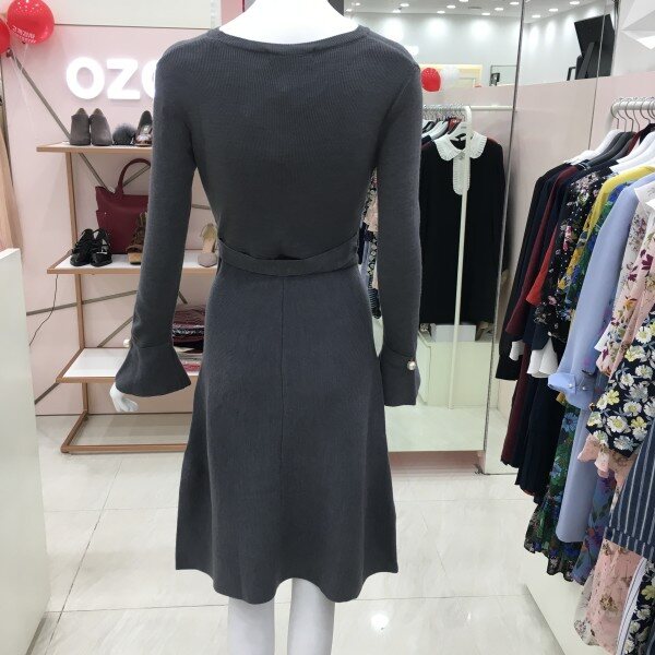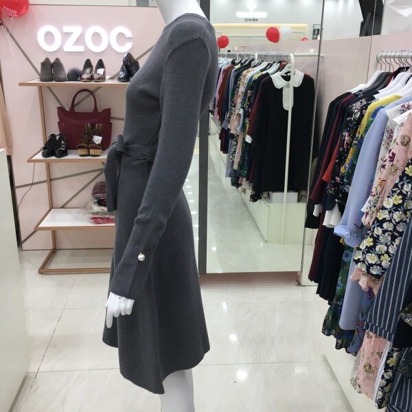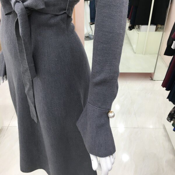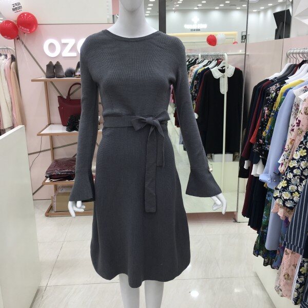 소매 나팔 디테일에 진주 단추가 더해져더욱 여성스러운 분위기를 연출하는 니트 원피스 소개해드려요.